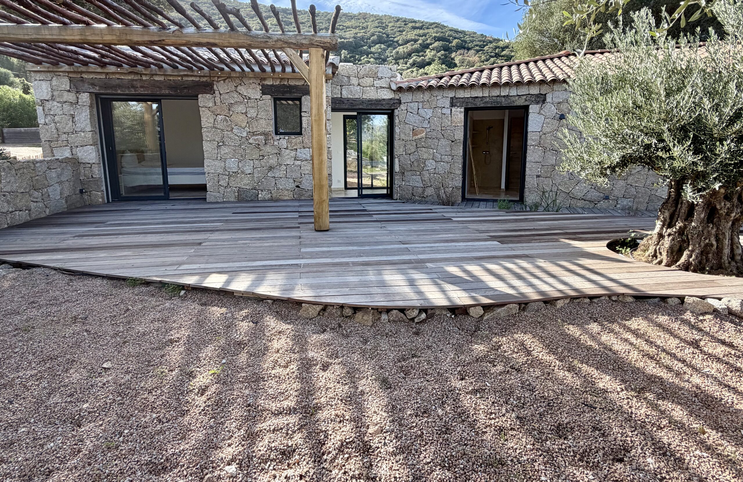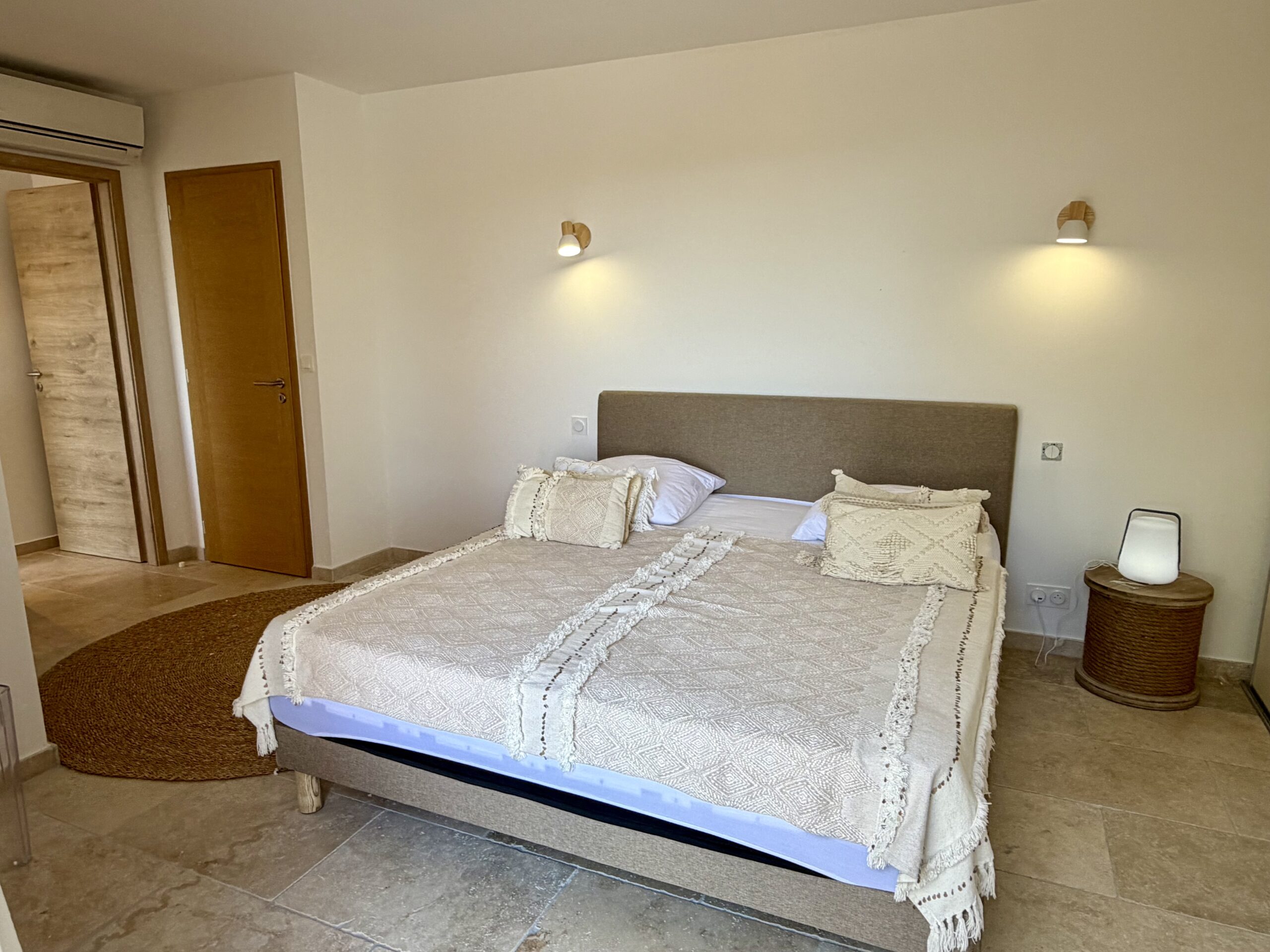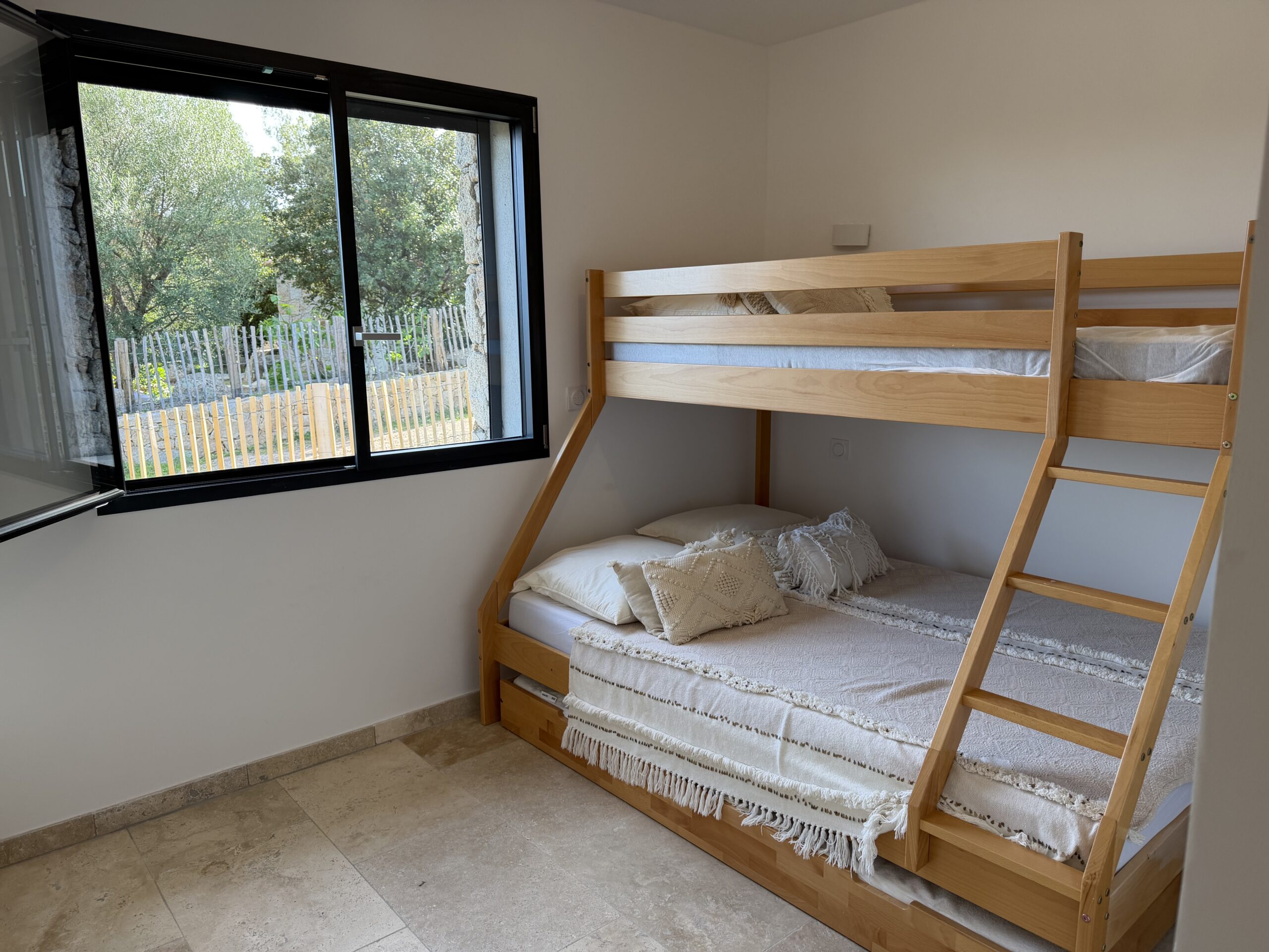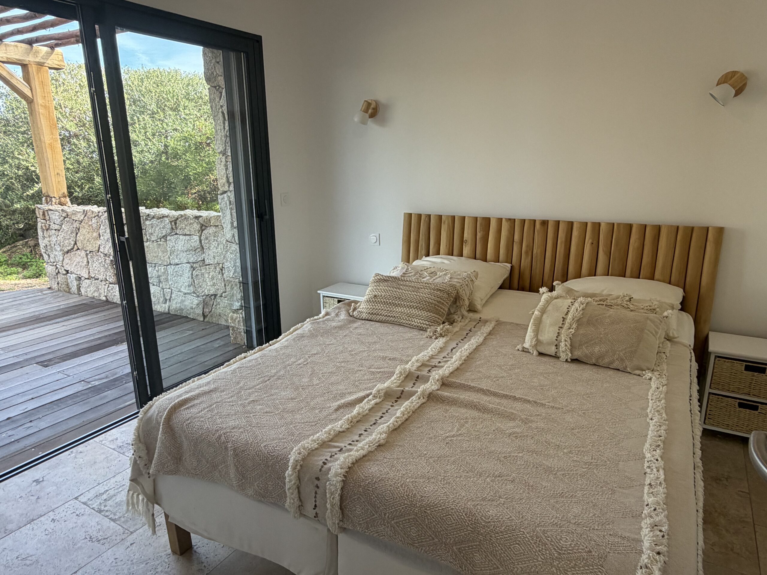 Villa récente entièrement climatisée à seulement 850 m de la plage de Pinarello. Elle se compose d une lumineuse pièce de vie traversante avec une cuisine ouverte aménagée et équipée d un réfrigérateur/congélateur, un four électrique, une plaque à induction, un micro-ondes, un coin buanderie avec lave linge et sèche linge, un coin salon salle à manger avec TV, internet donnant accès à l extérieur et à une terrasse couverte avec barbecue idéale pour prendre ses repas. Un w-c indépendant, 2 suites parentales lits en 180, 1 chambre avec lit en 160, un w-c indépendant, 1 chambre enfant avec lit superposé (120 lit du bas et 90 lit du haut), une salle de bain avec baignoire. Elle dispose également d’une piscine 4x10m et d’un terrain de pétanque.