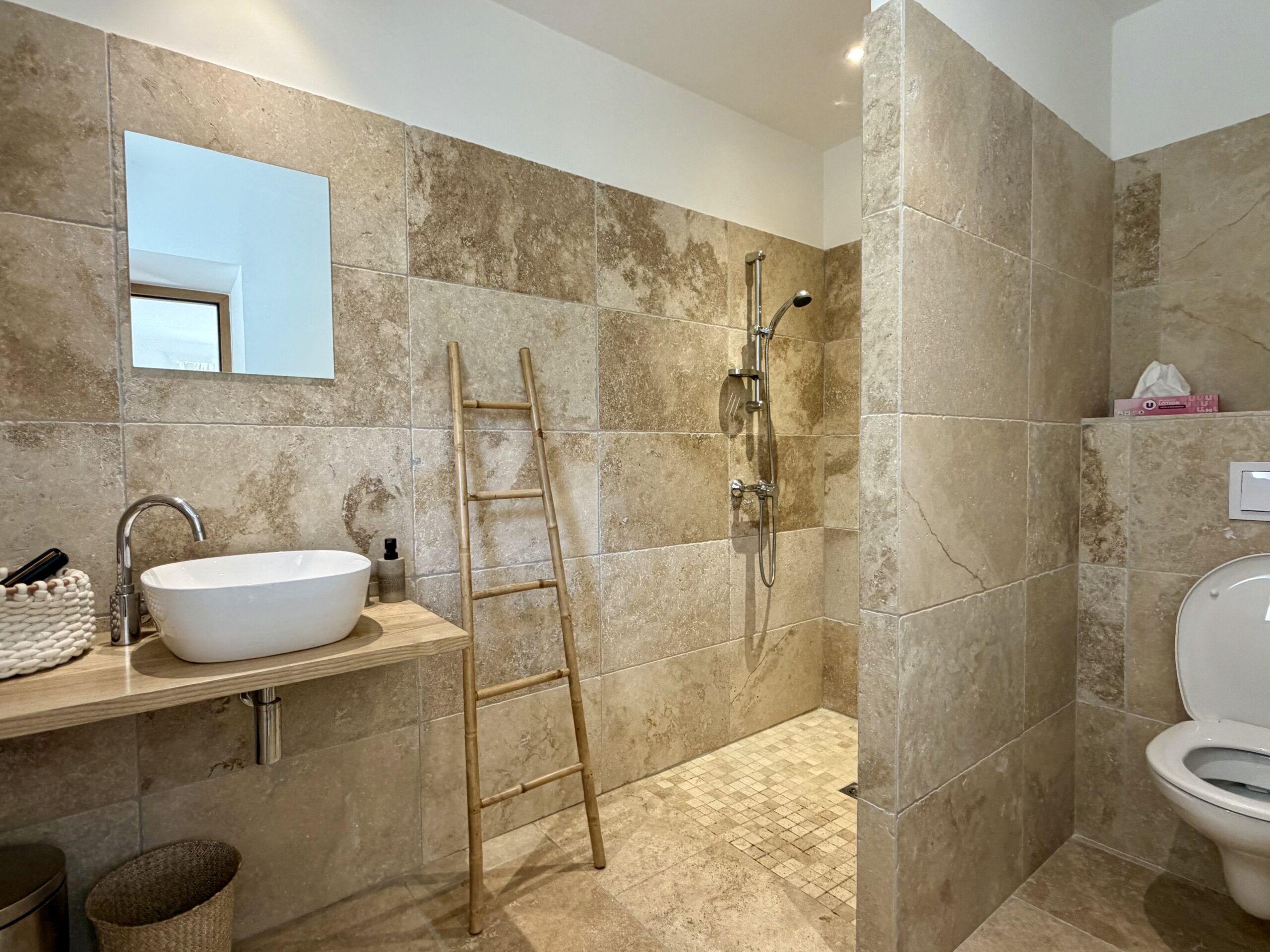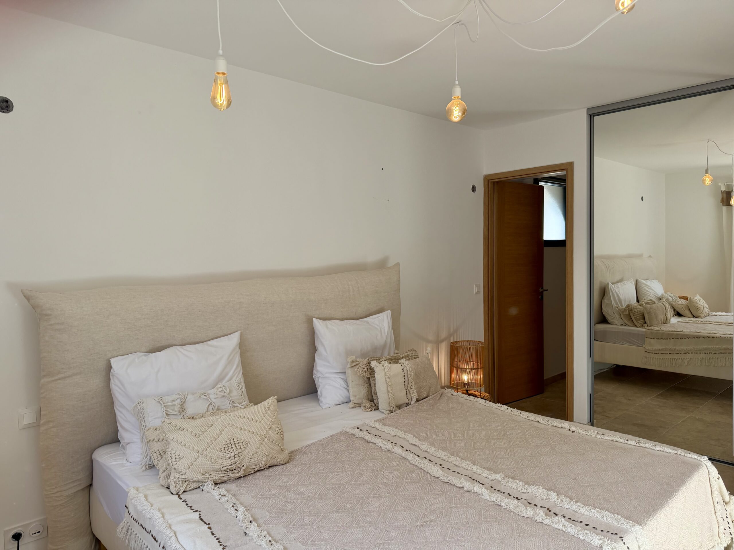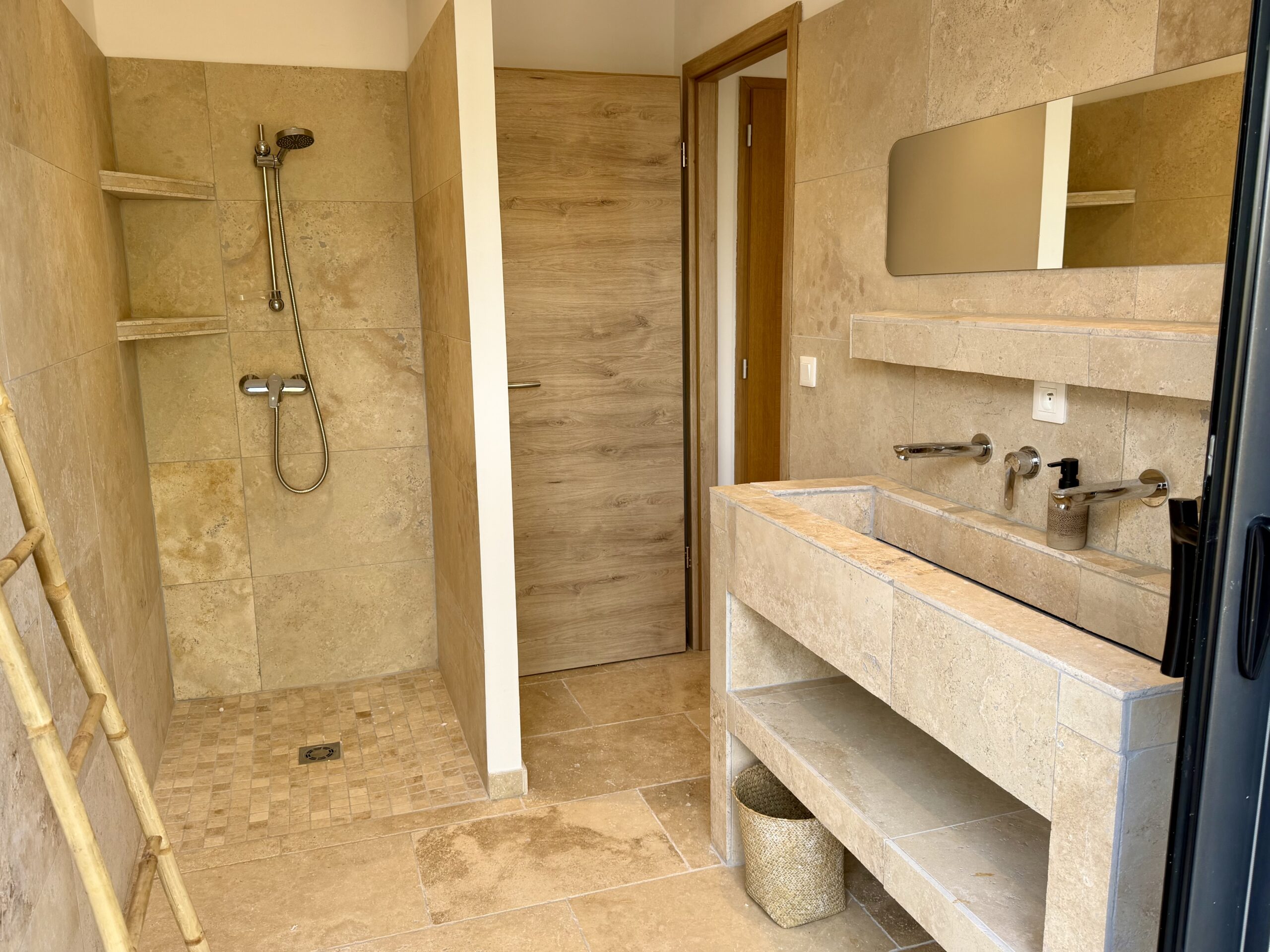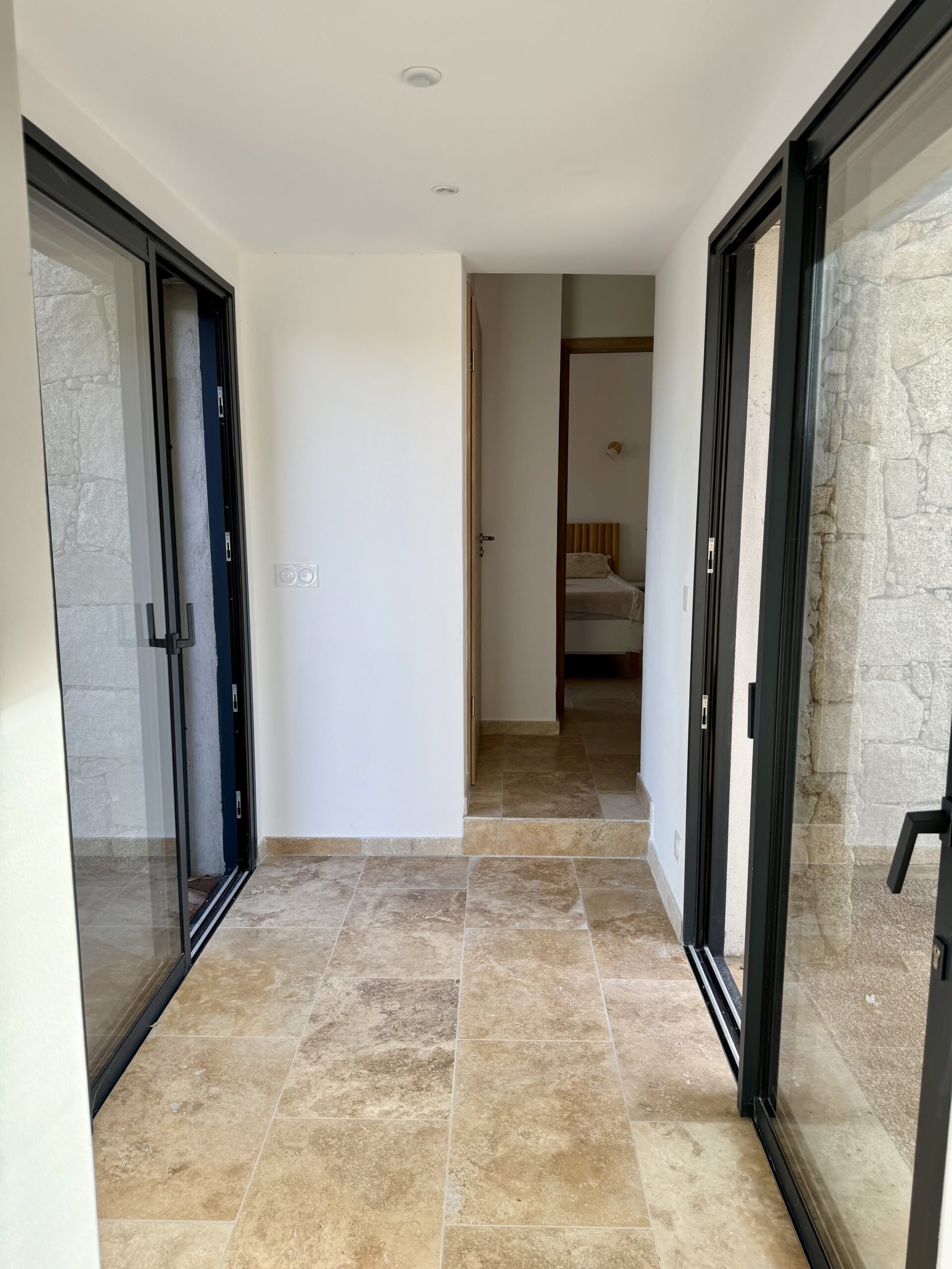 Villa récente entièrement climatisée à seulement 850 m de la plage de Pinarello. Elle se compose d une lumineuse pièce de vie traversante avec une cuisine ouverte aménagée et équipée d un réfrigérateur/congélateur, un four électrique, une plaque à induction, un micro-ondes, un coin buanderie avec lave linge et sèche linge, un coin salon salle à manger avec TV, internet donnant accès à l extérieur et à une terrasse couverte avec barbecue idéale pour prendre ses repas. Un w-c indépendant, 2 suites parentales lits en 180, 1 chambre avec lit en 160, un w-c indépendant, 1 chambre enfant avec lit superposé (120 lit du bas et 90 lit du haut), une salle de bain avec baignoire. Elle dispose également d’une piscine 4x10m et d’un terrain de pétanque.