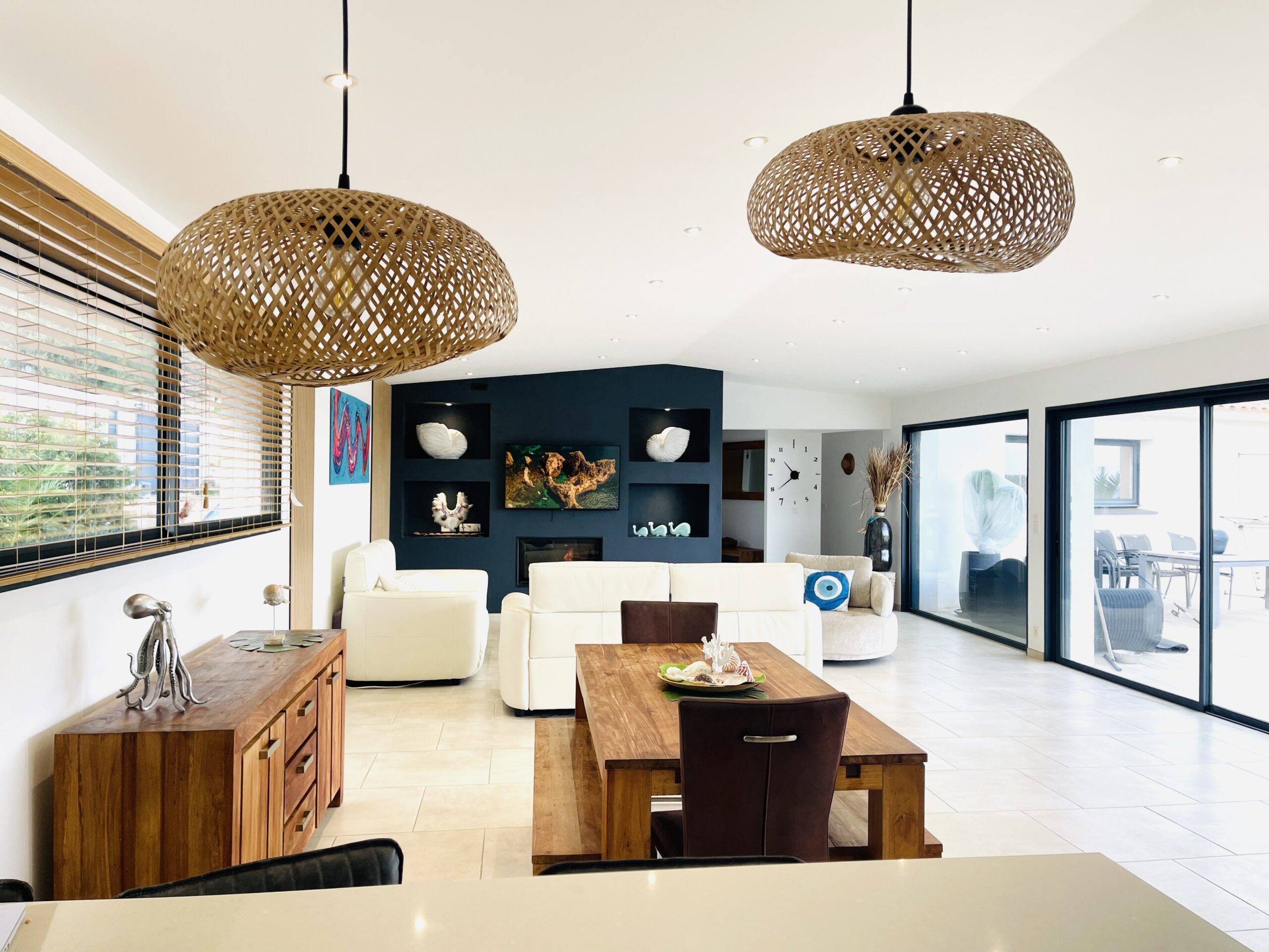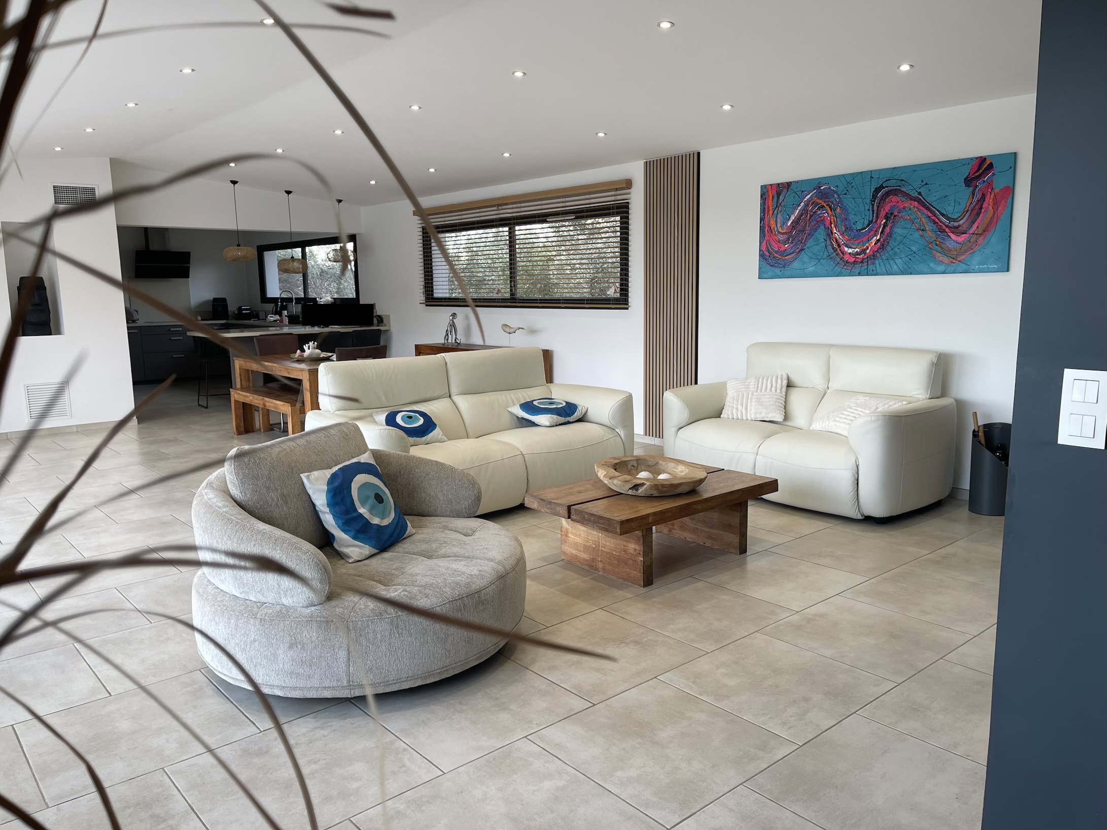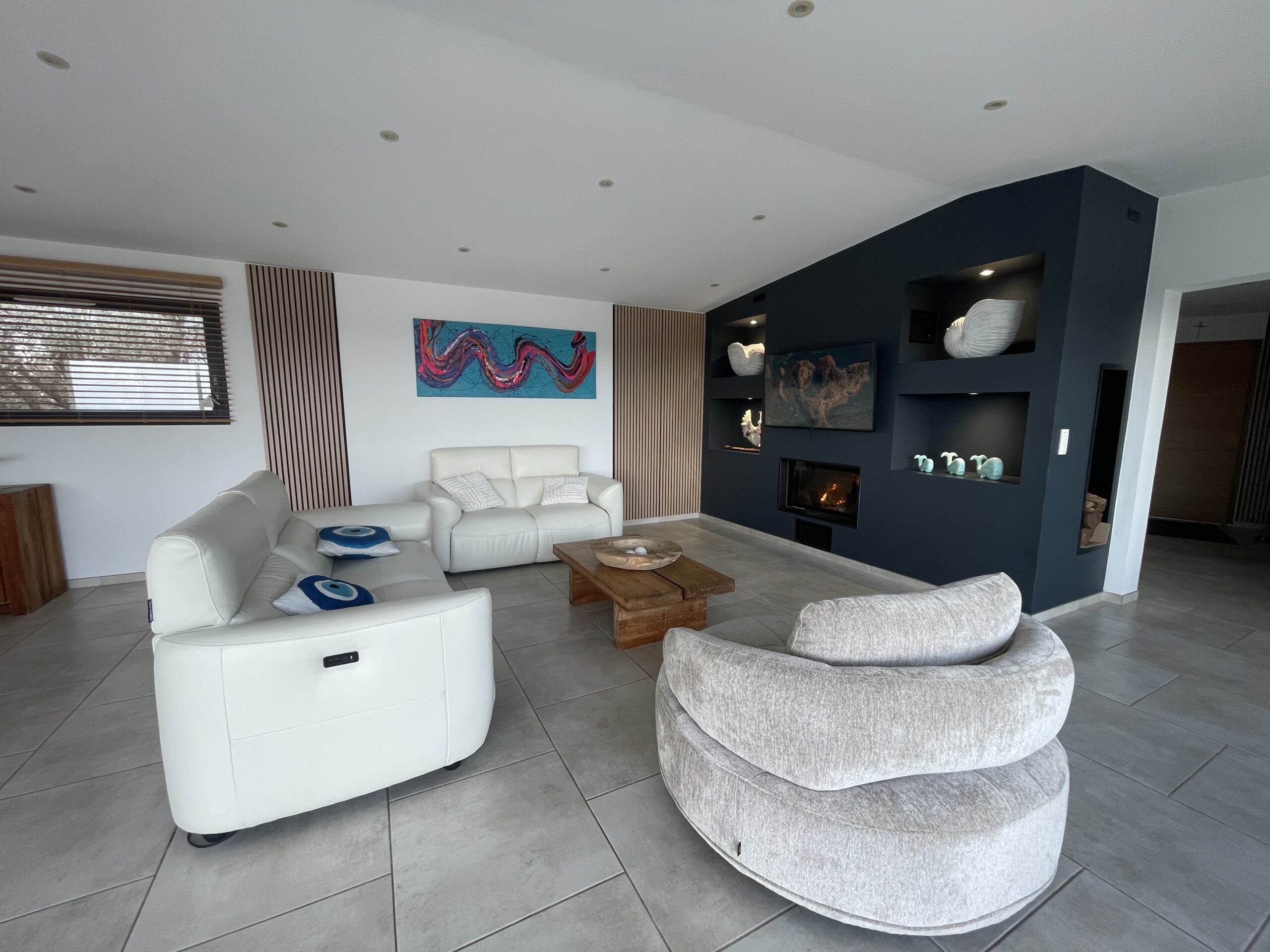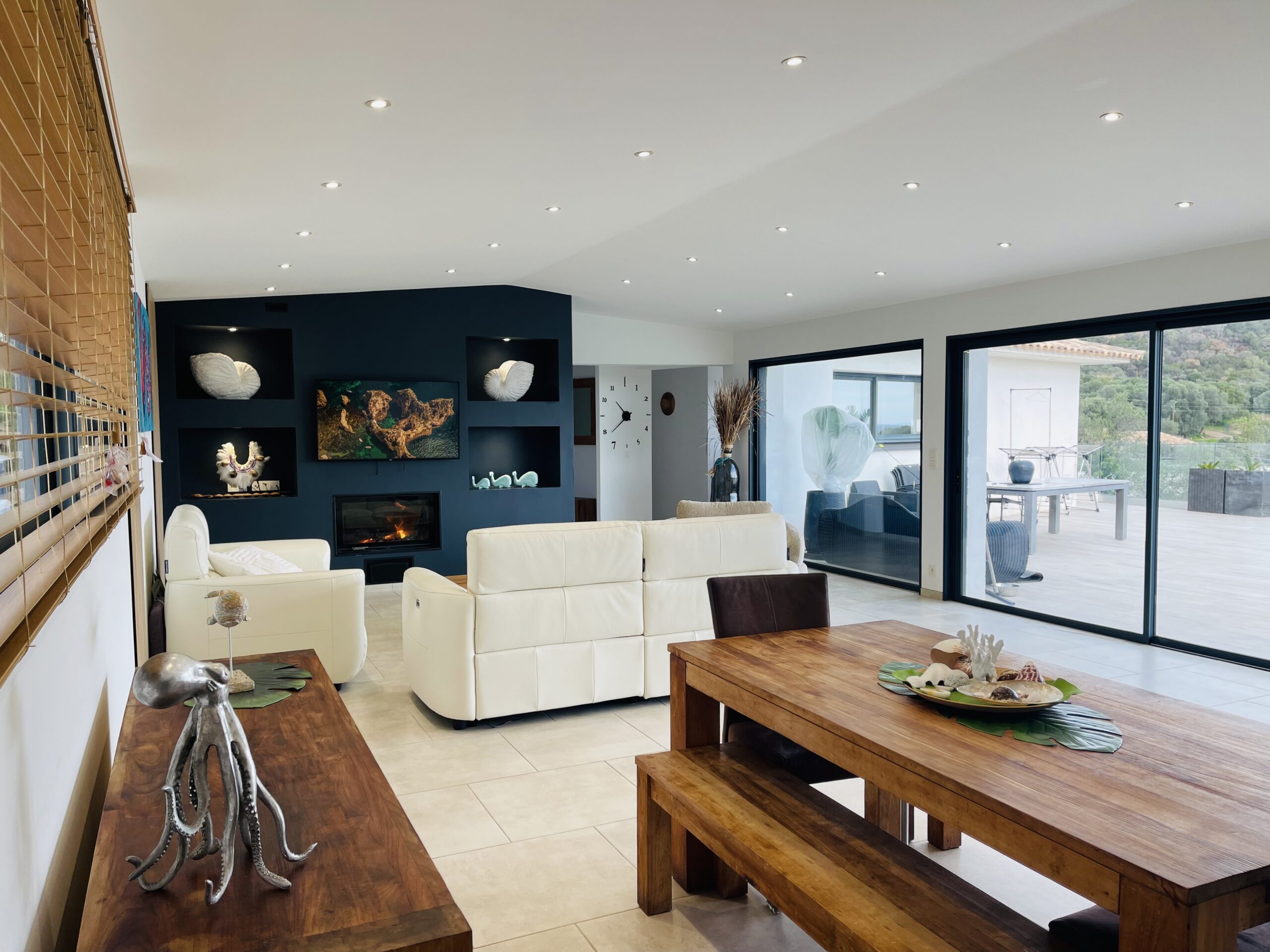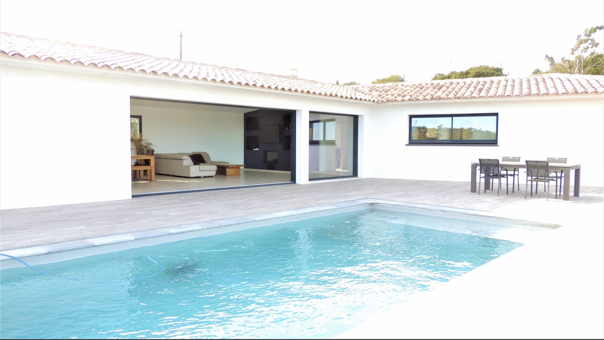 Sur un terrain de 2000 m' est construite une magnifique villa, entièrement climatisée avec piscine, vue mer idéalement située à 2,5 km de la somptueuse plages du Cabanon bleu dans la baie de Saint Cyprien.